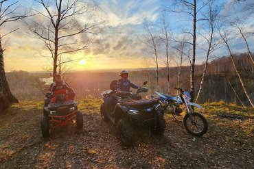 Быстрая и чистая река, сосновый бор, просторные луга, разнообразный растительный и животный мир ждут вас. Следы кабанов, лосей пересекаются со следами квадроцикла. Красочные пейзажи сменяют друг друга на протяжении всего пути. Постепенно вы все более осваиваете мотовездеход, а маршрут усложняется. Фото и видео в подарок!